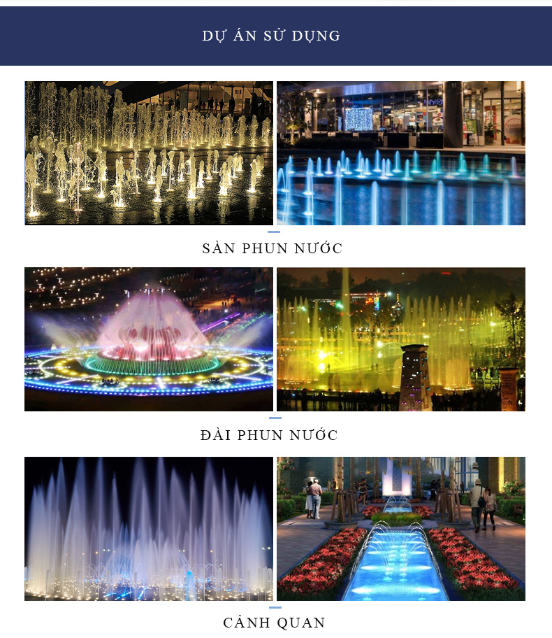 - Khu đô thị mới: Thiết kế và lắp đặt hệ thống nhạc nước, tạo điểm nhấn cho khu vực quảng trường trung tâm.