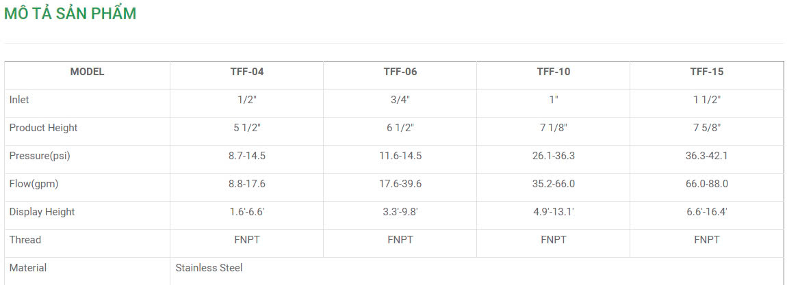 - Vòi phun được lắp đặt trang trí phổ biến cho các hệ thống đài phun nước mini, đài phun nước âm sàn, hệ thống phun nước tiểu cảnh, hồ cá Koi...